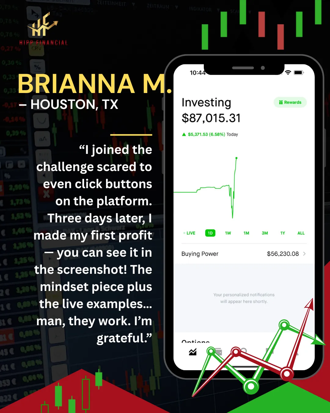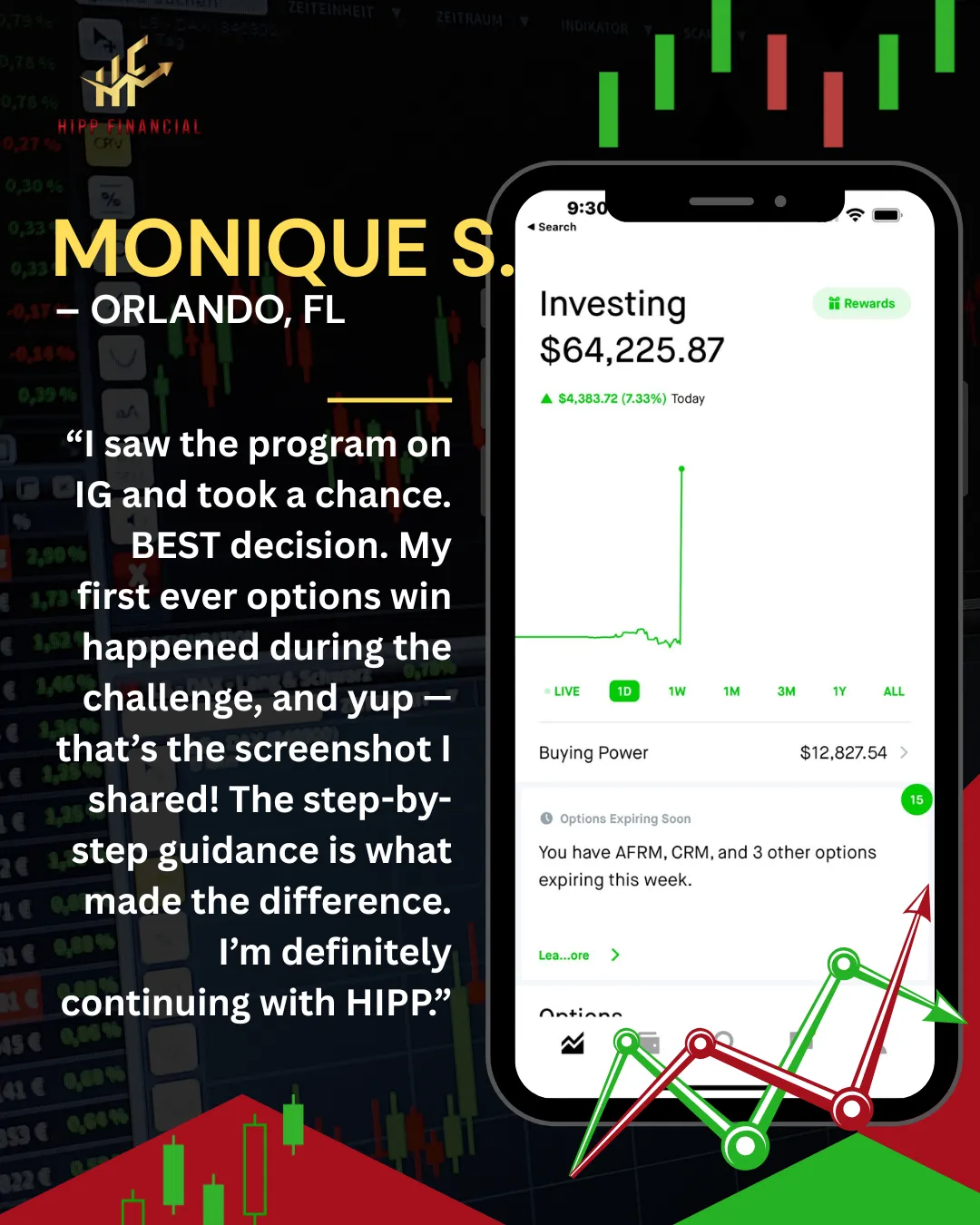 Money By Monday is a 3-day live trading challenge designed to help beginners and struggling traders understand how options trading really works — from mindset, platform setup, chart reading, and finding trade setups, all the way to placing a practice live trade with real-time mentorship. It’s hands-on, beginner-friendly, and built for fast learning.